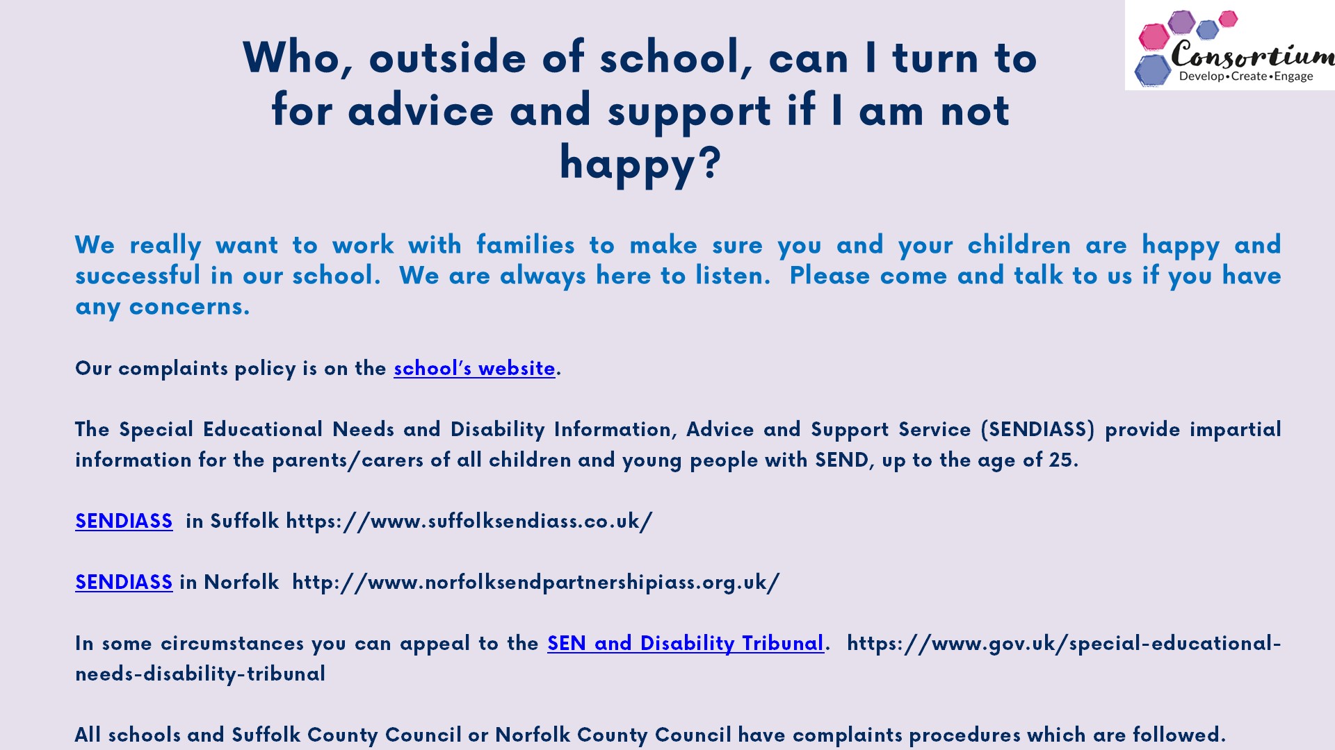 Suffolk SEND - Information and advice for families of children and young people with Special Educational Needs and Disabilities (SEND) in Suffolk.